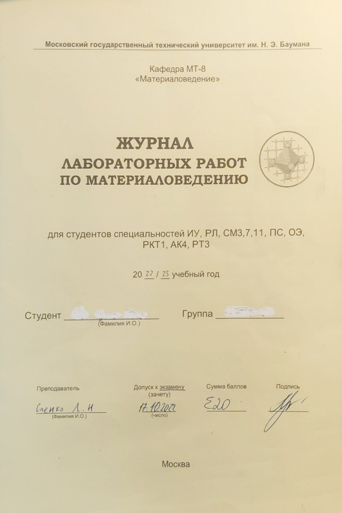 Для студентов МГТУ им. Н.Э.Баумана по предмету МатериаловедениеЖурнал лабораторных работЖурнал лабораторных работ