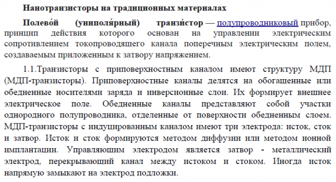 Реферат: Нанотранзисторные структуры на традиционных и новых материалах