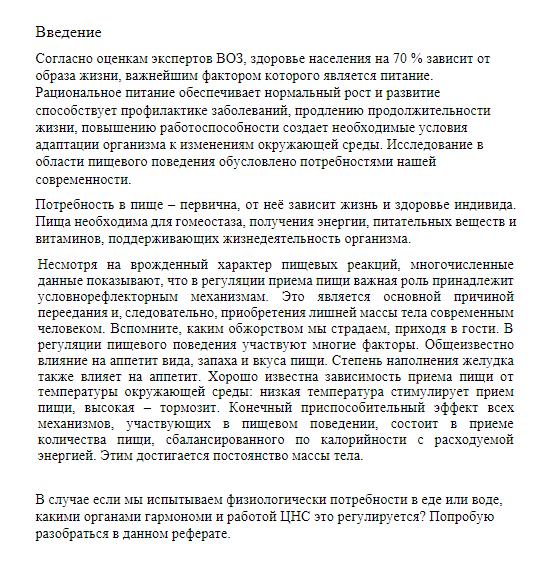 Реферат: Нейропсихология пищевого и питьевого поведения