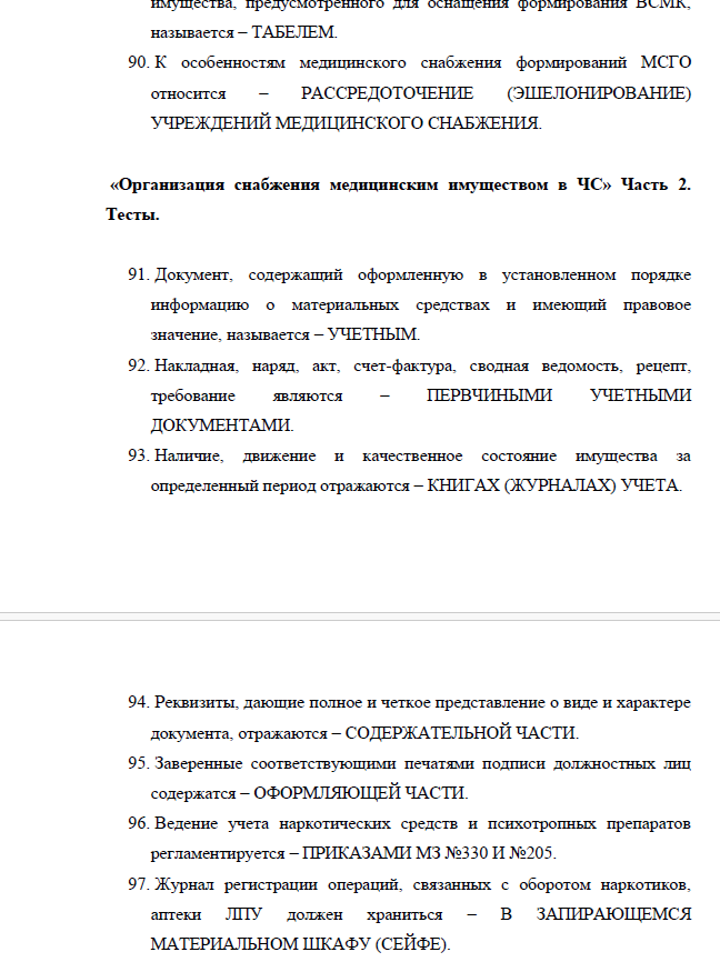 Для студентов ПИМУ по предмету Медицина«Организация снабжения медицинским имуществом в ЧС» Часть 2. Тесты.«Организация снабжения медицинским имуществом в ЧС» Часть 2. Тесты.
