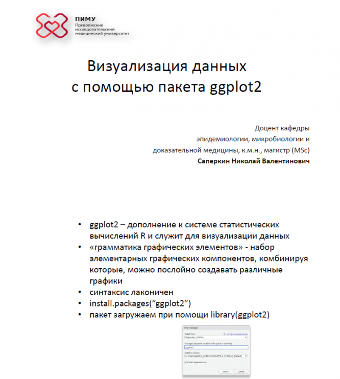Для студентов ПИМУ по предмету МедицинаВизуализация данных с помощью пакета ggplot2Визуализация данных с помощью пакета ggplot2