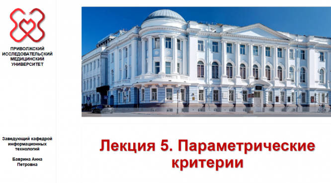 Для студентов ПИМУ по предмету МедицинаЛекция 5. Параметрические критерииЛекция 5. Параметрические критерии