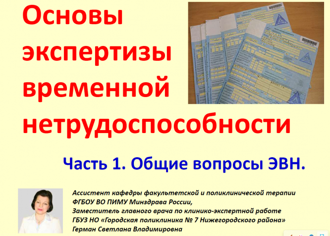 Для студентов ПИМУ по предмету МедицинаОсновы экспертизы временной нетрудоспособностиОсновы экспертизы временной нетрудоспособности
