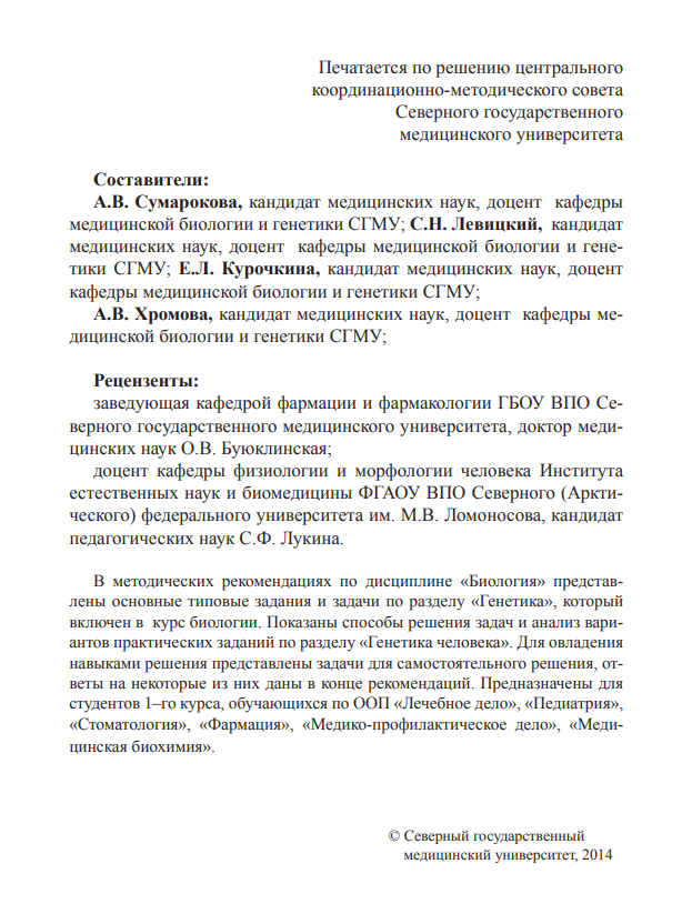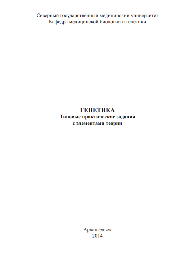 Для студентов СГМУ по предмету Медицинская генетикаГенетика. Типовые практические задания с элементами теории. А.В. Сумарокова, С.Н. Левицкий, Е.Л. Курочкина, А.В. ХромоваГенетика. Типовые практические задания с элементами теории. А.В. Сумарокова, С.Н. Левицкий, Е.Л. Курочкина, А.В. Хромова
