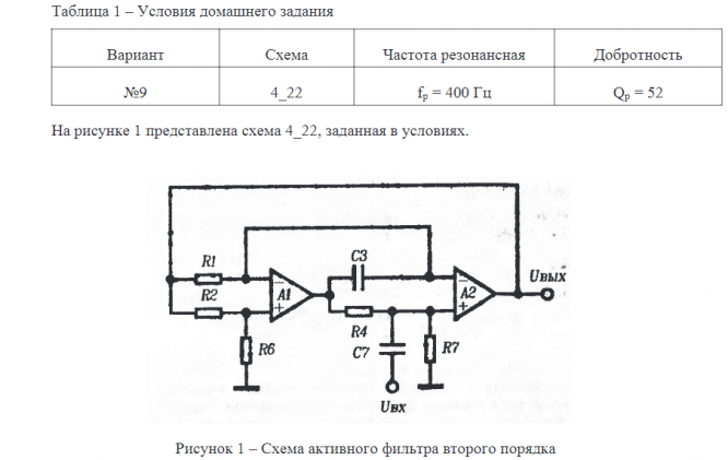 Цель работы: изучение методов получения передаточных функций активных фильтров второго порядка и исследование их основных характеристик.
