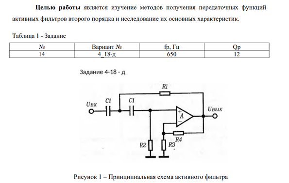 Лабораторная работа 4: Исследование основных характеристик активных фильтров медицинских приборов и систем вариант 14