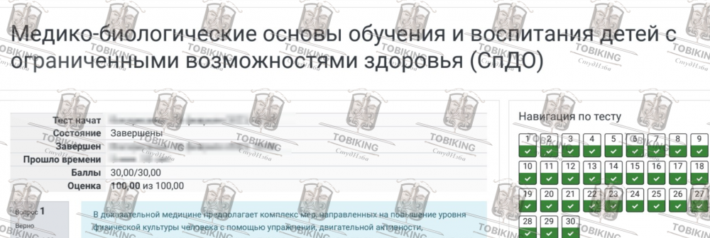 Ответы на все тесты Медико-биологические основы обучения и воспитания детей с ограниченными возможностями здоровья