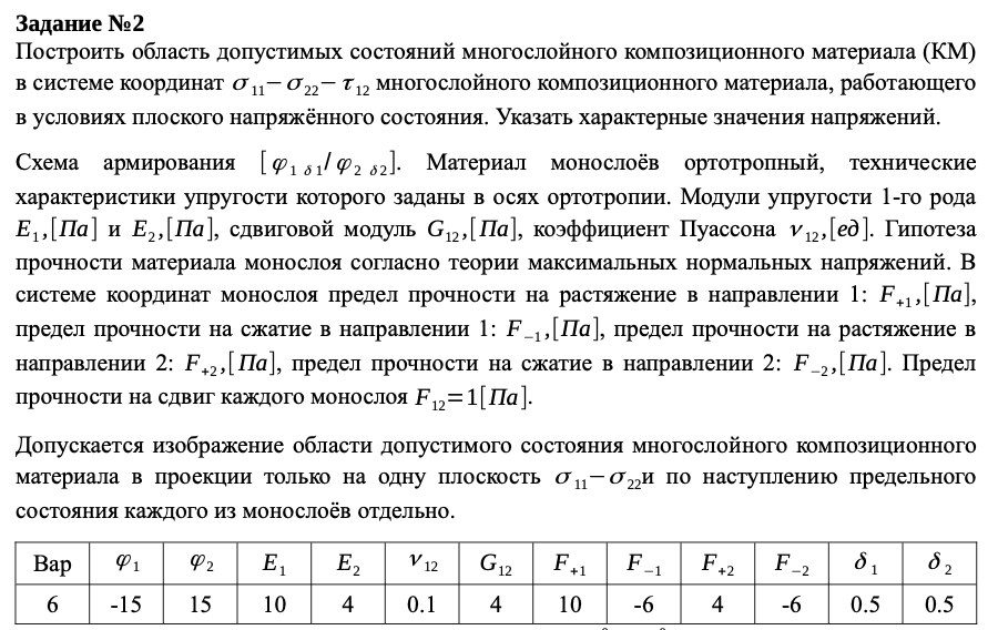 ДЗ: Матрица жесткости + область допустимых состояний композита вариант 6