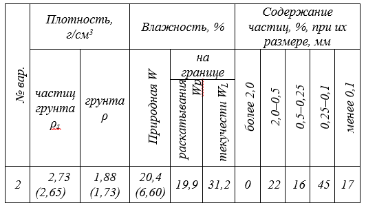 Практическая работа №1 Тема «Определение показателей физических свойств грунтов» Вариант 2