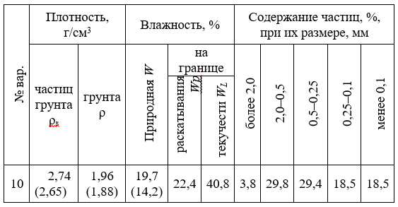 Главная » Учебные материалы » Механика грунтов » Домашние задания » Росдистант » 3 семестр » Номер 1 » Вариант 10 » Практическая работа №1 Тема Определение показателей физических свойств грунтов