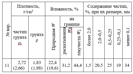 Главная » Учебные материалы » Механика грунтов » Домашние задания » Росдистант » 3 семестр » Номер 1 » Вариант 11 » Практическая работа №1 Тема Определение показателей физических свойств грунтов