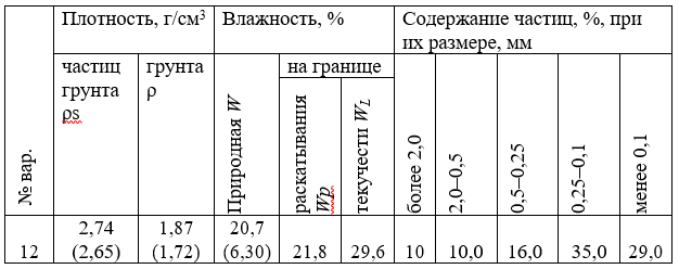 Практическая работа №1 Тема «Определение показателей физических свойств грунтов» Вариант 12