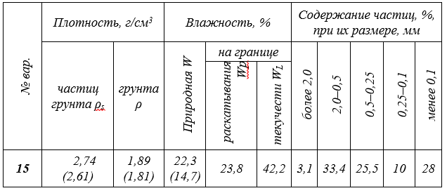 Практическая работа №1 Тема «Определение показателей физических свойств грунтов» Вариант 15