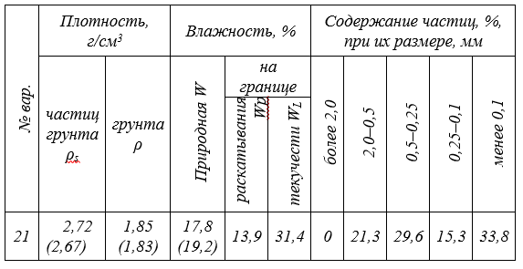 Главная » Учебные материалы » Механика грунтов » Домашние задания » Росдистант » 3 семестр » Номер 1 » Вариант 21 » Практическая работа №1 Тема Определение показателей физических свойств грунтов