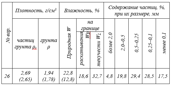 Главная » Учебные материалы » Механика грунтов » Домашние задания » Росдистант » 3 семестр » Номер 1 » Вариант 26 » Практическая работа №1 Тема Определение показателей физических свойств грунтов