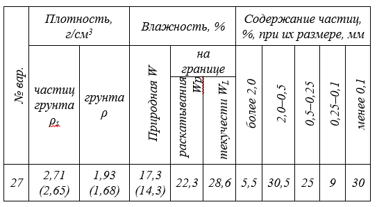 Практическая работа №1 Тема «Определение показателей физических свойств грунтов» Вариант 27