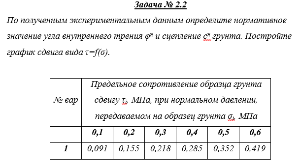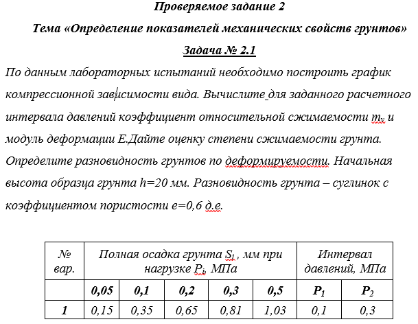 ДЗ 2: Проверяемое задание 2 Тема Определение показателей механических свойств грунтов вариант 1