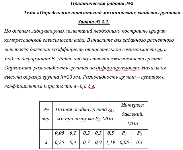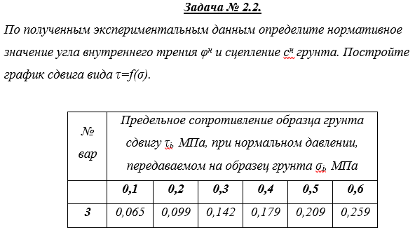ДЗ 2: Проверяемое задание 2 Тема Определение показателей механических свойств грунтов вариант 3