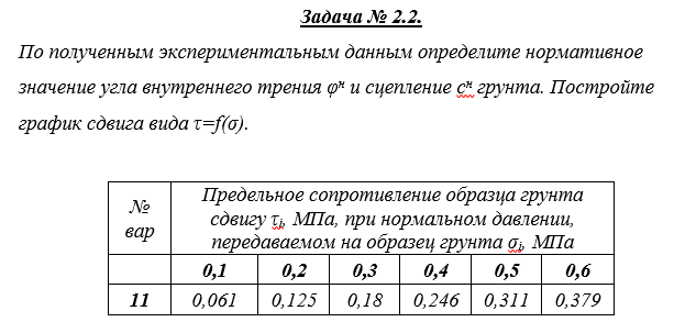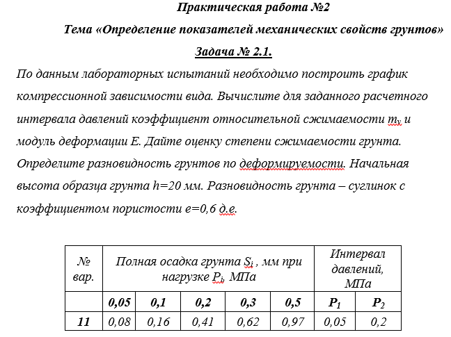 ДЗ 2: Проверяемое задание 2 Тема Определение показателей механических свойств грунтов вариант 11