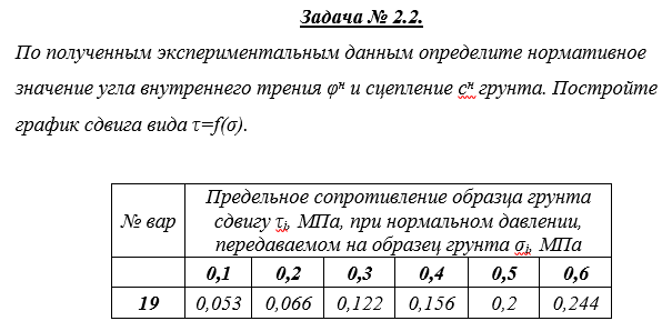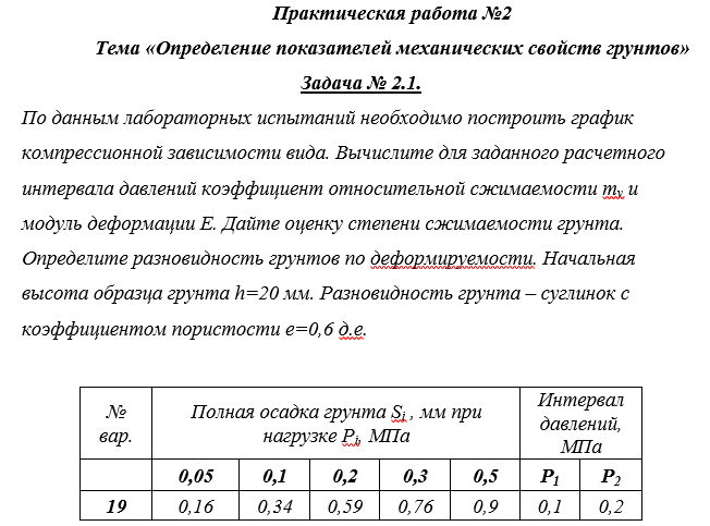 ДЗ 2: Проверяемое задание 2 Тема Определение показателей механических свойств грунтов вариант 19