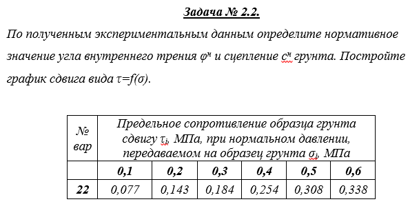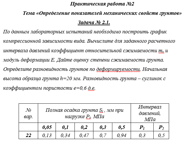 ДЗ 2: Проверяемое задание 2 Тема Определение показателей механических свойств грунтов вариант 22