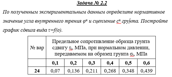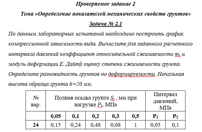 ДЗ 2: Проверяемое задание 2 Тема Определение показателей механических свойств грунтов вариант 24