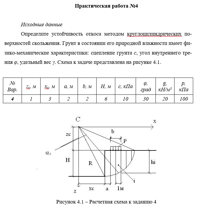 ДЗ 4: Проверяемое задание №4 Тема: Определение устойчивости грунтового откоса вариант 4
