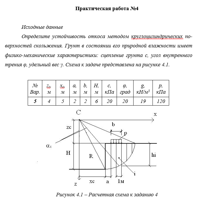 ДЗ 4: Проверяемое задание №4 Тема: Определение устойчивости грунтового откоса вариант 5