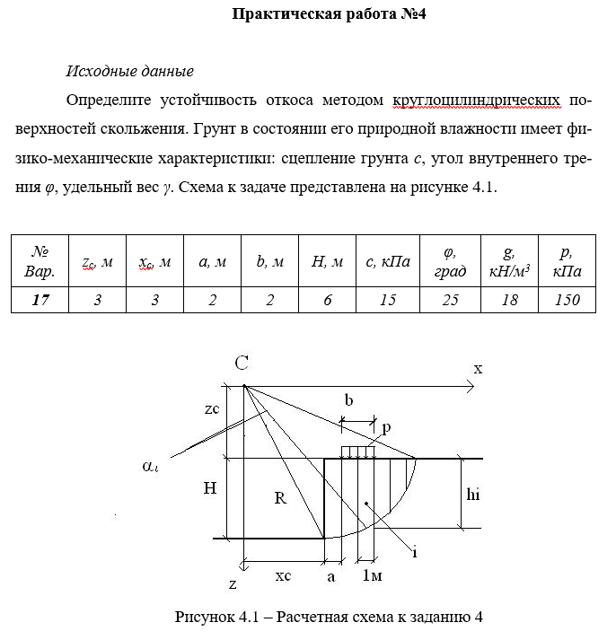 ДЗ 4: Проверяемое задание №4 Тема: Определение устойчивости грунтового откоса вариант 17