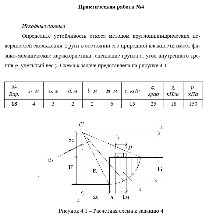 ДЗ 4: Проверяемое задание №4 Тема: Определение устойчивости грунтового откоса вариант 18
