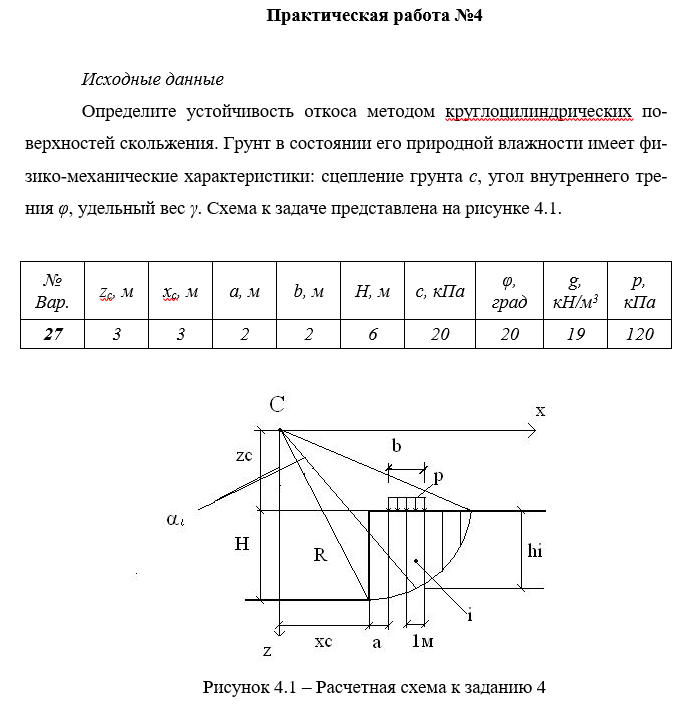 ДЗ 4: Проверяемое задание №4 Тема: Определение устойчивости грунтового откоса вариант 27
