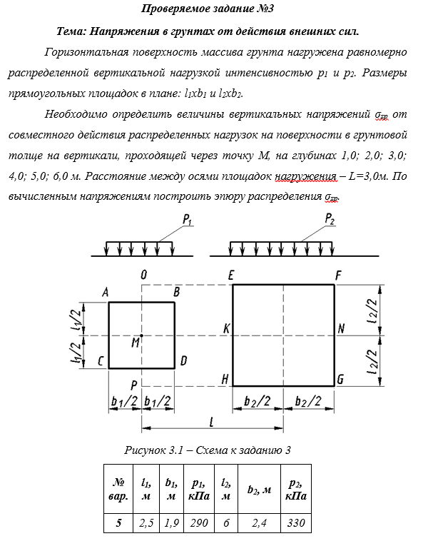 Практическая работа №3 Тема: Напряжения в грунтах от действия внешних сил. Вариант 5