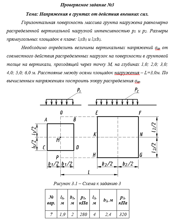 Практическая работа №3 Тема: Напряжения в грунтах от действия внешних сил. Вариант 7