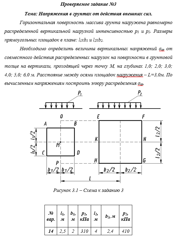 Практическая работа №3 Тема: Напряжения в грунтах от действия внешних сил. Вариант 14