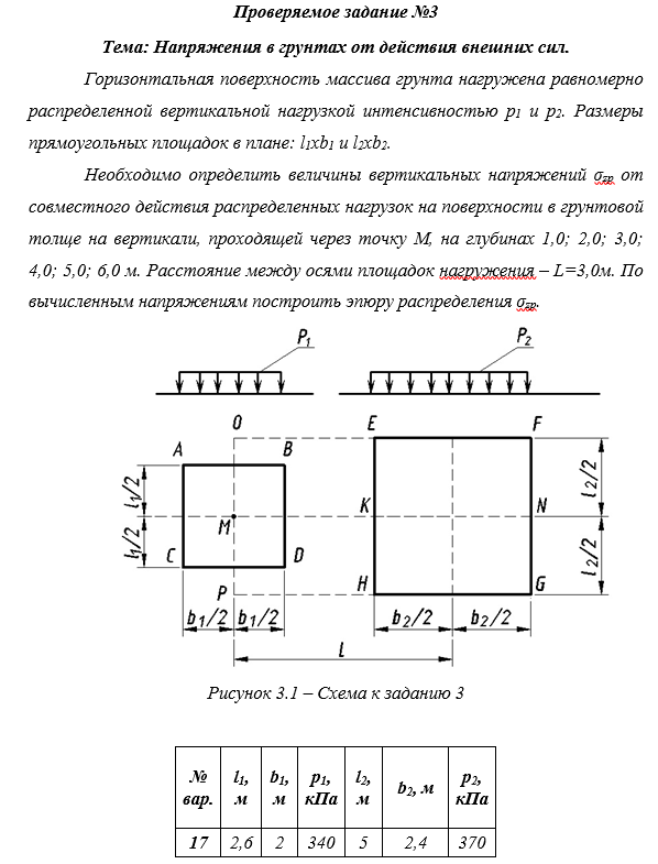 Практическая работа №3 Тема: Напряжения в грунтах от действия внешних сил. Вариант 17