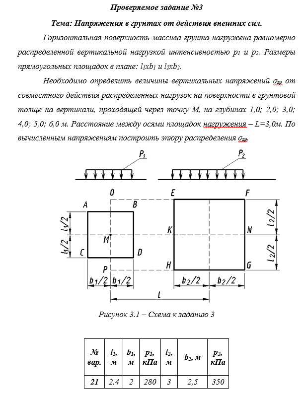 Практическая работа №3 Тема: Напряжения в грунтах от действия внешних сил. Вариант 21