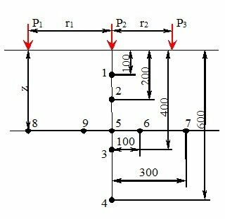 Глубина рассматриваемой точки от плоскости приложения сил: z = 300 см