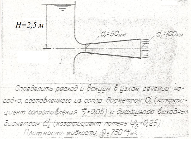 Ответы к экзамену: Задача с экзамена № 71 [Определить расход и вакуум в узком сечении насадка, составленного из сопла ...]