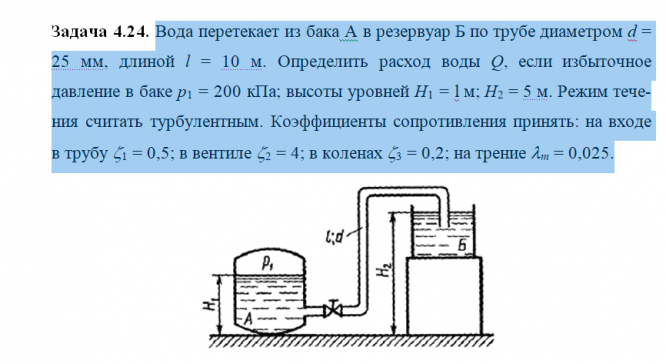 Для студентов МГТУ им. Н.Э.Баумана по предмету Механика жидкости и газа (МЖГ или Гидравлика)Вода перетекает из бака А в резервуар Б по трубе диаметром d = 25 мм, длиной l = 10 м. Определить расход воды Q,Вода перетекает из бака А в резервуар Б по трубе диаметром d = 25 мм, длиной l = 10 м. Определить расход воды Q,