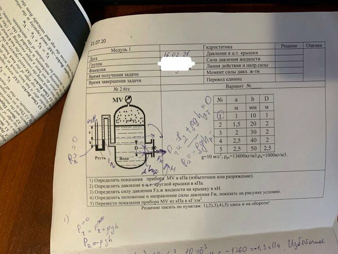 Ответы к контрольной работе: КР 1 Модуль - "Гидростатика"