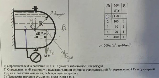 Ответы к контрольной работе: КР№2 - 1 Модуль - "Гидростатика"