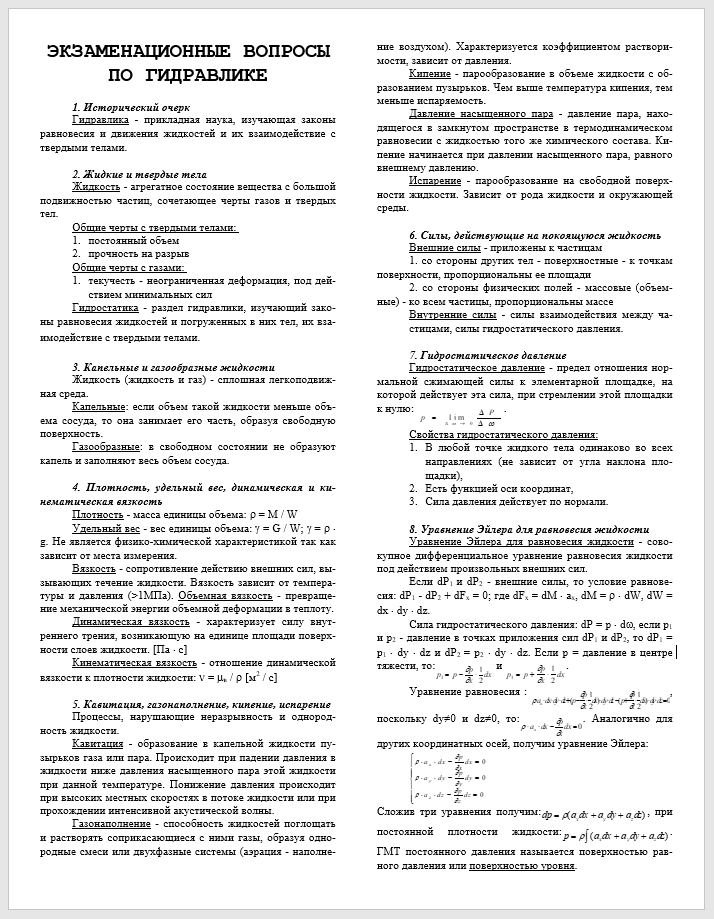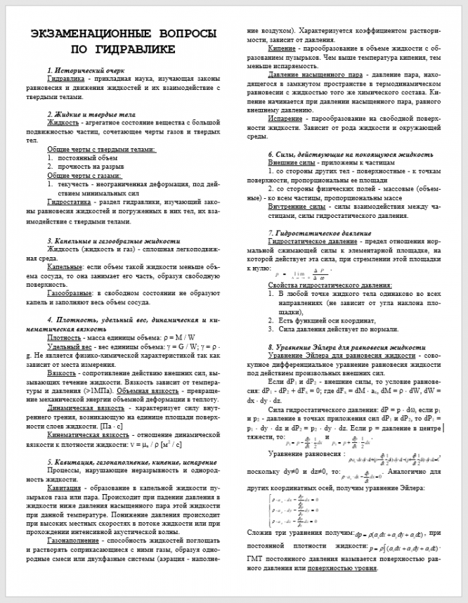 Ответы на вопросы для подготовки к экзамену по МЖГ (Гидравлика)