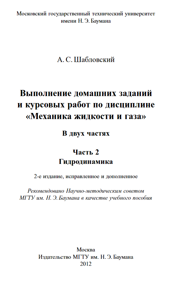 Книга: МУ для ДЗ и КП по дисциплине "МЖГ" - Часть 2 Гидродинамика