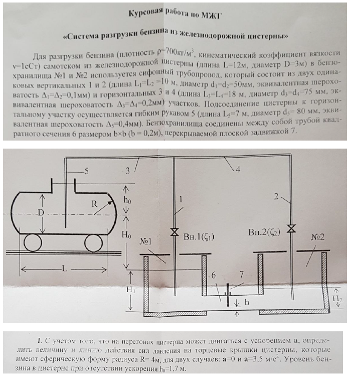 Для студентов МГТУ им. Н.Э.Баумана по предмету Механика жидкости и газа (МЖГ или Гидравлика)Система разгрузки бензина из железнодорожной цистерныСистема разгрузки бензина из железнодорожной цистерны