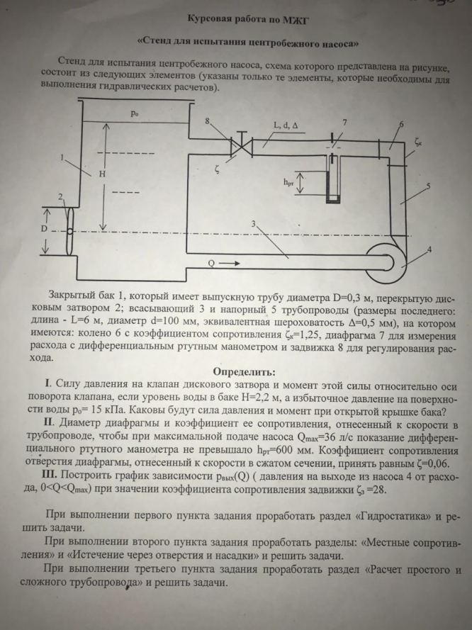 I этап курсовой работы по МЖГ "Стенд для испытания центробежного насоса"