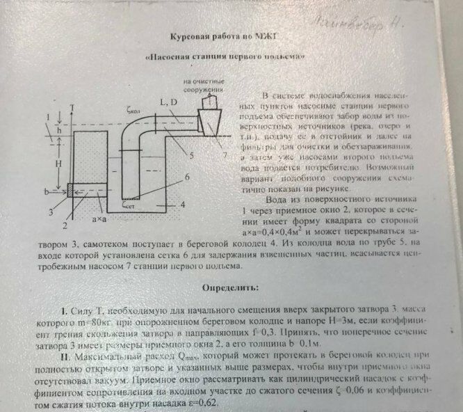 Для студентов МГТУ им. Н.Э.Баумана по предмету Механика жидкости и газа (МЖГ или Гидравлика)Насосная станция первого подъемаНасосная станция первого подъема