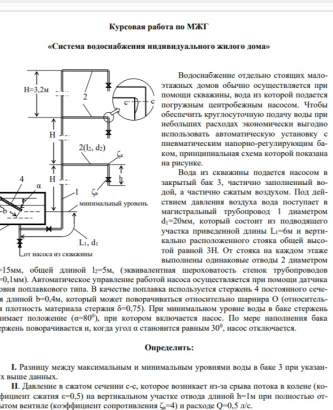Для студентов МГТУ им. Н.Э.Баумана по предмету Механика жидкости и газа (МЖГ или Гидравлика)Система водоснабжения индивидуального жилого домаСистема водоснабжения индивидуального жилого дома