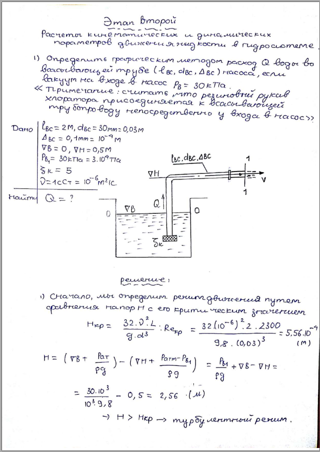 👉Этап второй: Расчеты кинематических и динамических параметров движения жидкости в гидросистеме