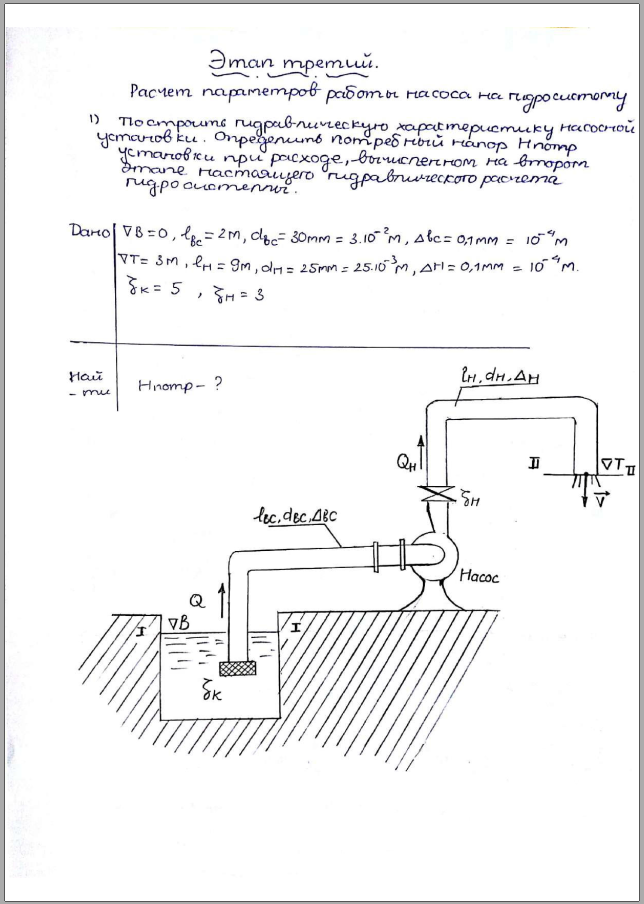 👉Этап третий: Расчет параметров работы насоса на гидросистему