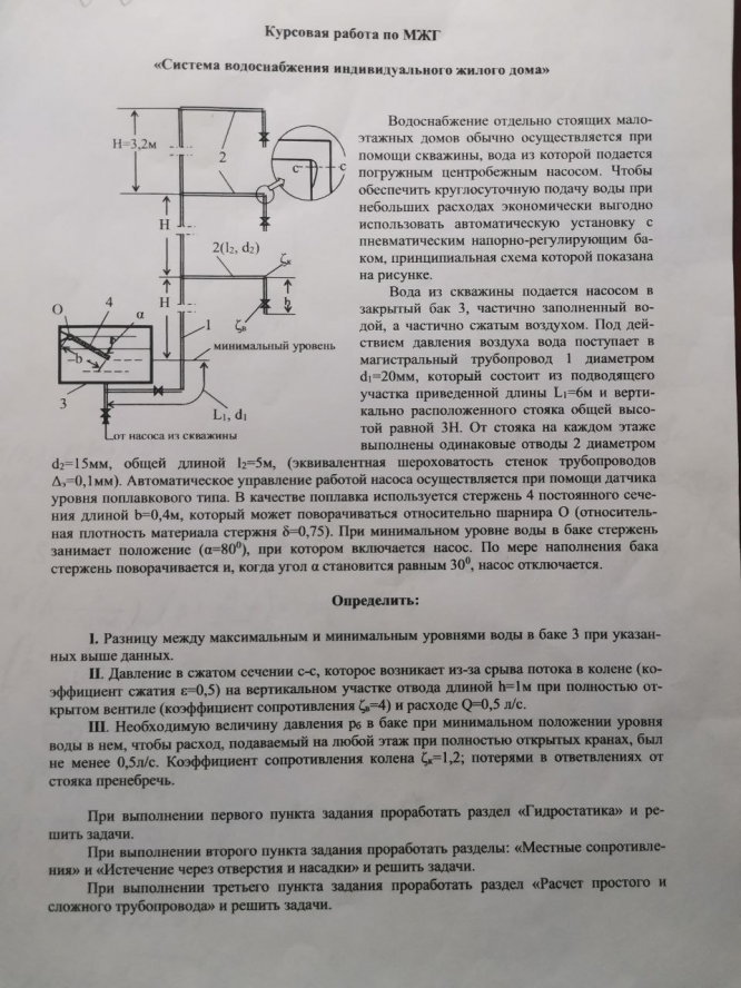 Для студентов МГТУ им. Н.Э.Баумана по предмету Механика жидкости и газа (МЖГ или Гидравлика)Система водоснабжения индивидуального жилого домаСистема водоснабжения индивидуального жилого дома
